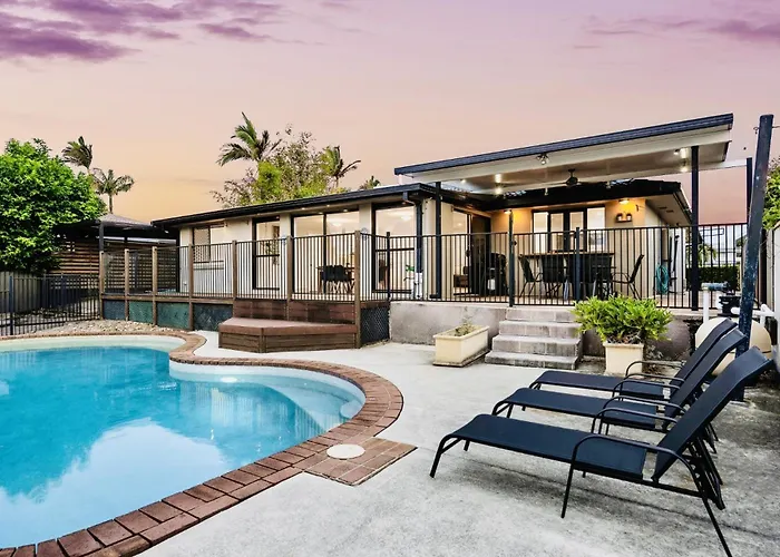 La Villa Perfect Family Retreat Gold Coast cuenta con una piscina privada y se encuentra a 2 km del Restaurante Cabaret Drácula Gold Coast. La casa de vacaciones ofrece acceso a una terraza e invita a los huéspedes a visitar el Centro de Exposiciones y Convenciones de Gold Coast, situado a unos 25 minutos a pie.